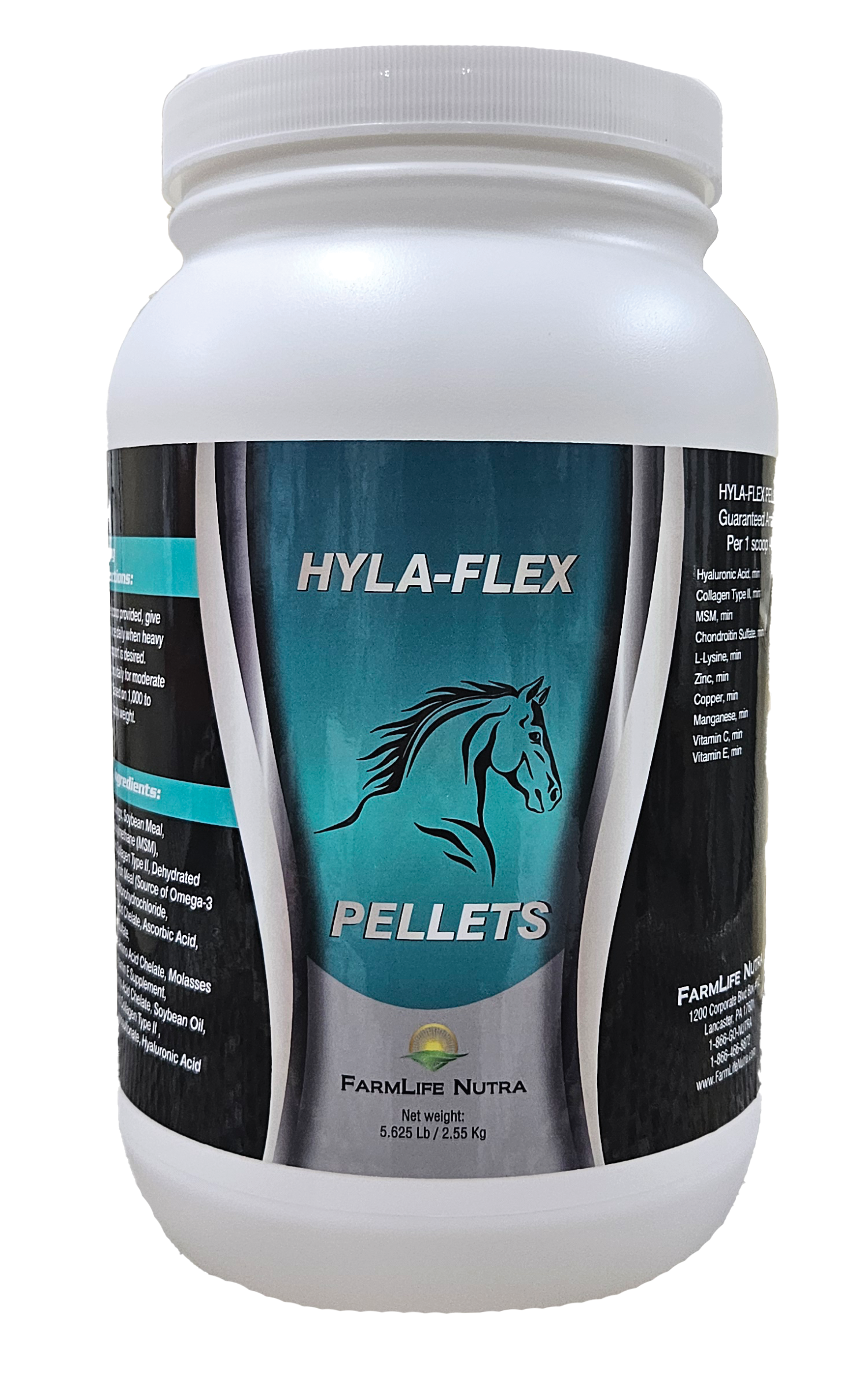 A blend of Hyaluronic Acid & Type II Collagen with other supplementary ingredients focused on supporting healthy cartilage and joint lubrication in horses. Contains both Undenatured (pure) Collagen & Collagen Peptides for the most comprehensive support of cartilage possible, compared to other products, which only include the peptides. Where the nutrients in EQUINE LEG ARMOR focus more heavily on healthy Tendon, Ligament & Bone support, HYLA-FLEX more specifically focus on interior joint health and supporting the production of healthy cartilage & synovial fluid for horses described as having “dry/stiff joints”.
